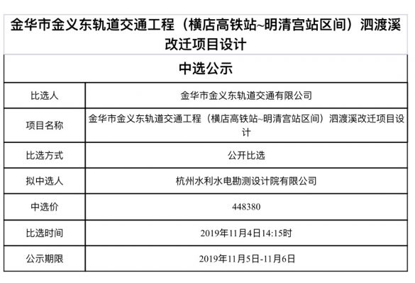 金華市金義東軌道交通有限公司運營環(huán)境長效管理系統項目中標候選人公示
