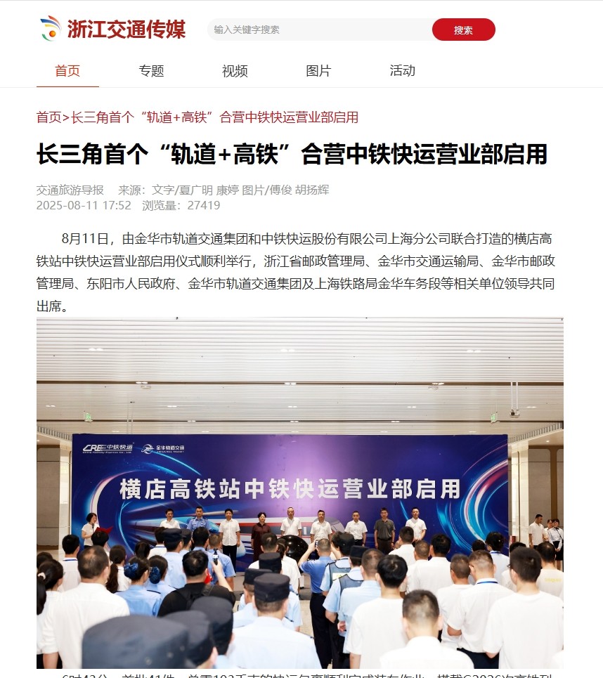 人民網(wǎng)、央廣網(wǎng)、改革網(wǎng)、《工人日報(bào)》客戶端、中央廣電總臺國際在線、《浙江日報(bào)》、浙江衛(wèi)視《聯(lián)播快訊》、潮新聞客戶端、浙江交通之聲、交通旅游導(dǎo)報(bào)、金華日報(bào)等國家級、省市級主流媒體相繼報(bào)道相關(guān)內(nèi)容。