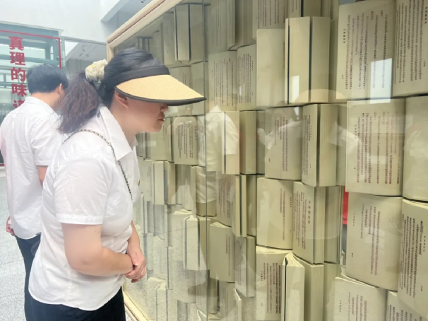 站外,外墻浮雕和廣場雕塑共同訴說著“真理味道 信仰之源”的故事。第一部中文版《共產(chǎn)黨宣言》的翻譯全過程,在這里得到詳盡展示。點點燈火代表星星之火,中間的書本正是《共產(chǎn)黨宣言》,翻動的書頁,正是點亮世界的真理力量。