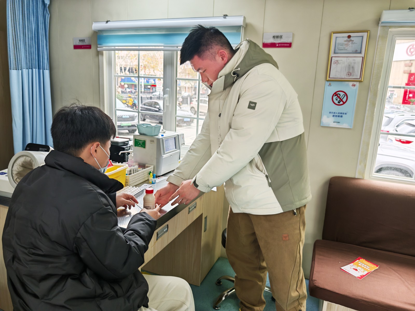 “獻(xiàn)完血后盡量不要?jiǎng)×疫\(yùn)動(dòng),不要提重物,注意休息,多飲水,保持飲食清淡。”活動(dòng)現(xiàn)場(chǎng),志愿隊(duì)員們兵分兩路開(kāi)展獻(xiàn)血志愿服務(wù)。一方面向周邊市民發(fā)放宣傳手冊(cè),以現(xiàn)場(chǎng)咨詢(xún)、答疑解惑的方式向市民們普及獻(xiàn)血知識(shí);另一方面嚴(yán)格按照采血工作要求,為前來(lái)獻(xiàn)血的愛(ài)心市民進(jìn)行填表登記、測(cè)量血壓等程序,并詳細(xì)詢(xún)問(wèn)獻(xiàn)血者近期身體狀況,為其講解獻(xiàn)血后的注意事項(xiàng)。