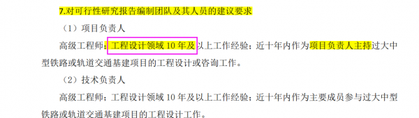 五、問:招標(biāo)文件中P12頁: 7.對(duì)可行性研究報(bào)告編制團(tuán)隊(duì)及其人員的建議要求: (1)項(xiàng)目負(fù)責(zé)人高級(jí)工程師;工程設(shè)計(jì)領(lǐng)域10年及以上工作經(jīng)驗(yàn);近十年內(nèi)作為項(xiàng)目負(fù)責(zé)人主持過大中型鐵路或軌道交通基建項(xiàng)目的工程設(shè)計(jì)或咨詢工作。請(qǐng)問:“近十年內(nèi)作為項(xiàng)目負(fù)責(zé)人主持過大中型鐵路或軌道交通基建項(xiàng)目的工程設(shè)計(jì)或咨詢工作”中“近十年內(nèi)”可否理解為近十年內(nèi)完工的項(xiàng)目?